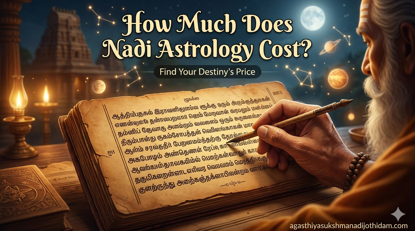 This is one of the most important markers. Genuine Nadi Jyothisham is conducted using physical palm leaf manuscripts written by the sage Agasthiyar thousands of years ago. If an astrologer claims to do "Nadi" using software, birth charts alone, or printed booklets, they are not practising authentic Nadi Astrology.